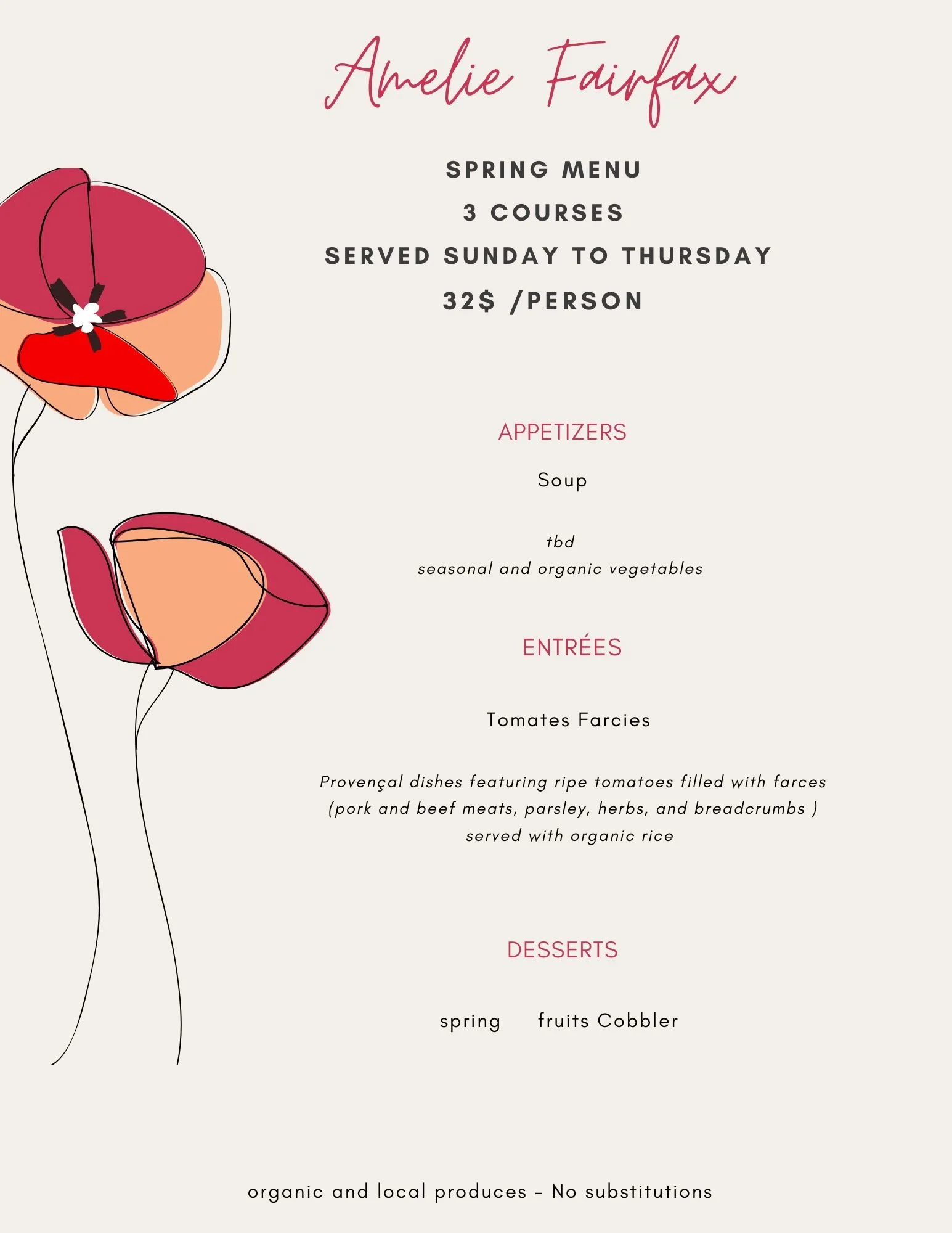 Sunday to Thursday Prix Fixe